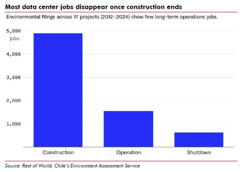 Majority of the job creation opportunities around data centers are those of construction workers. Far lesser people are required to maintain the center once operational.