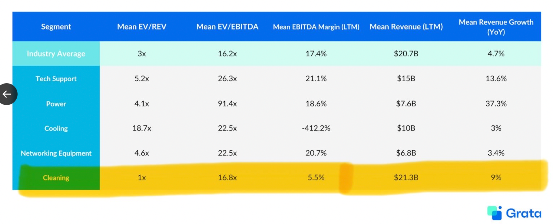 Data-center cleaning grows 2x the industry at 1x rev multiples. The most mispriced bet to play the sector?