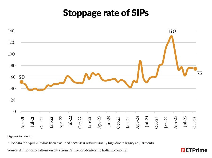 In 2025, 43.2 million SIPs have been discontinued or ceased and 50.4 million new SIPs have been opened, implying a stoppage rate of close to 86%. This means for every 100 SIPs being opened, 86 have been discontinued.