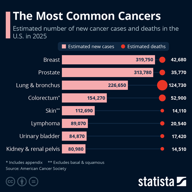 “There were more than two million new cases of #cancer in the United States in 2025, excluding non-melanoma skin cancers, as well as more than 618,000 estimated deaths, according to the American Cancer Society. Breast cancer was the most common with nearly 320,000 new cases”