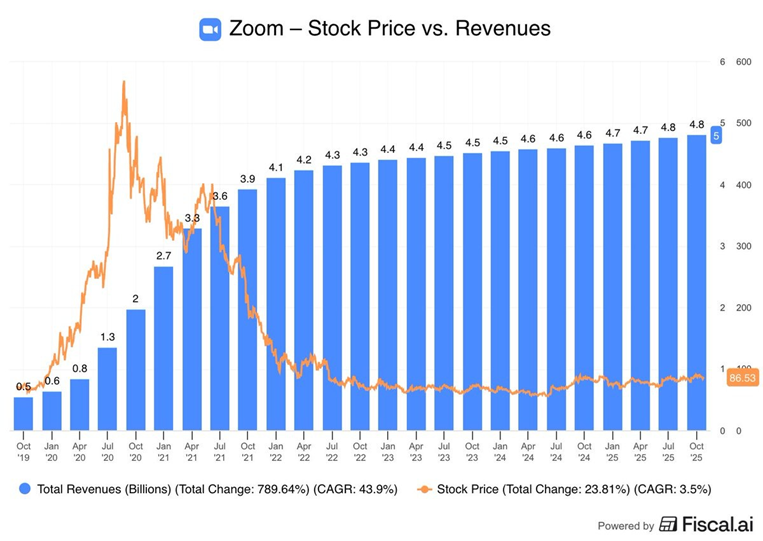 It is not about earnings alone, but about earnings growth silly. As zoom’s quarterly revenue growth has plateaued in the past 15 odd quarters to single digit, the stock price has dramatically crashed by over 80%!