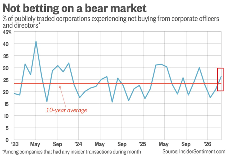 “26.4% of US publicly traded companies saw net insider purchases in March, the highest in 5 months.”