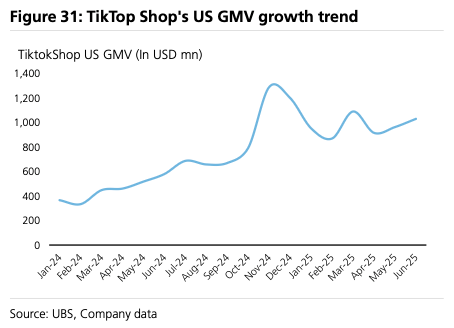 Monthly GMV on Tiktok Shop in the US is over a billion dollars vs. $500-600mn last year (ex of the holiday months). Wonder where black friday sales and christmas shopping have taken in this month?
