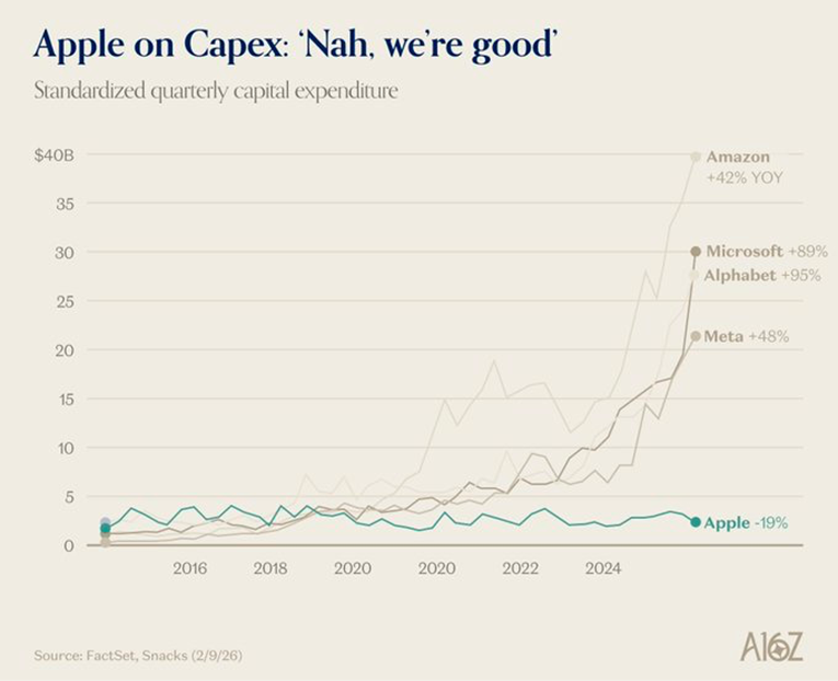 Instead of blitzscaling capex in an uncertain world, Apple prefers to simply license the winner and reserve cash to buy a few others.
