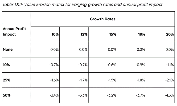 Even a 50% cut in one year's profit only changes the value of the business today by 4-5%*