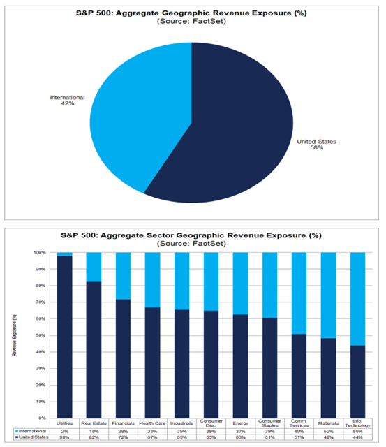42% of S&P revenues are international. 60% of tech revenues within S&P500 are international.
